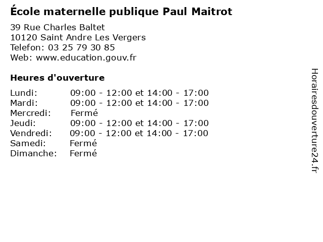 | Mardi | 09:00-12:00 et 14:00-17:00 |