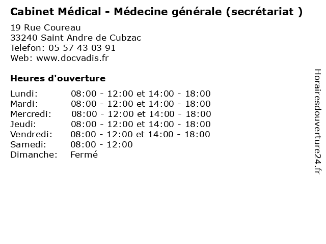 1 Cabinet médical - Médecine générale (secrétariat ) (Distance: 12,23 km) 101 avenue de Paris, 33620 Cavignac cabinet, consultation, docteur, générale, médecine, médical, santé, secrétariat 2 Cabinet Médical - Médecine générale (secrétariat ) (Distance: 18,07 km) 1 Boulevard Beauséjour, 33500 Libourne cabinet, consultation, docteur, générale, médecine, médical, santé, secrétariat 3 Cabinet Médical - Médecine générale (secrétariat ) (Distance: 18,35 km) 11 Rue Yves du Manoir, 33270 Floirac cabinet, consultation, docteur, générale, médecine, médical, santé, secrétariat 4 Cabinet Médical - Médecine générale (secrétariat ) (Distance: 19,74 km) 112 Rue Mondenard, 33000 Bordeaux cabinet, consultation, docteur, générale, médecine, médical, santé, secrétariat 5 Cabinet médical du docteur Babeau (secrétariat ) (Distance: 0,30 km) 3 Place du Gén de Gaulle, 33240 Saint-André-de-Cubzac babeau, cabinet, consultation, docteur, du, médecins, médical, santé, secrétariat 6 Cabinet Bedin Immobilier (Distance: 0,41 km) 55 Rue Emile Martin Dantagnan, 33240 Saint-André-de-Cubzac bedin, cabinet, immobilier |