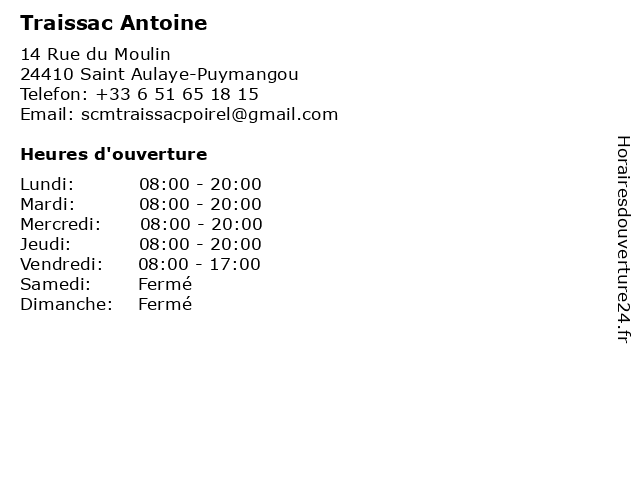 | Mercredi | 08:00-20:00 |