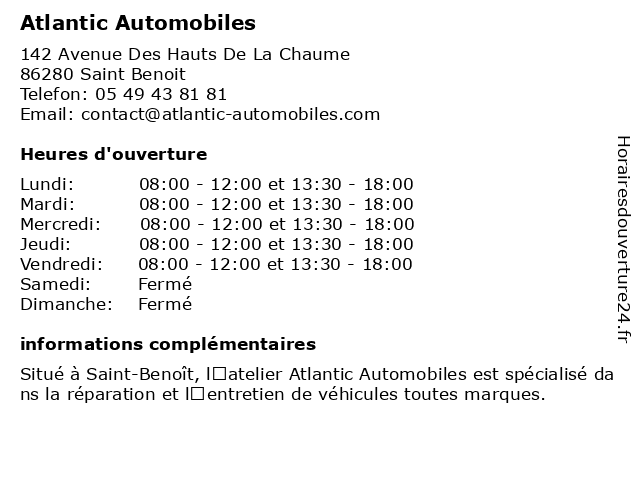 | Lundi | 08:00-12:00 et 13:30-18:00 |
