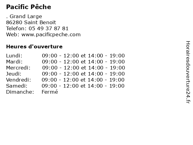 | Samedi | 09:00-12:00 et 14:00-19:00 |