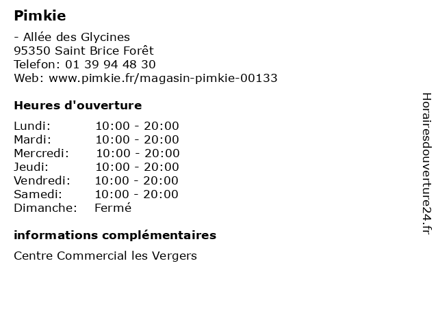 | Lundi | 10:00-20:00 |