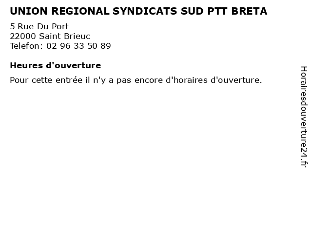 | Appeler UNION REGIONAL SYNDICATS SUD PTT BRETA | |