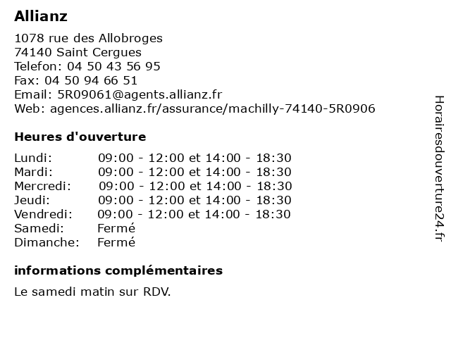 1 Allianz (Distance: 4,95 km) - avenue du Jura, 74890 Bons En Chablais allianz, assurances, bancaire, banque, services 3 Allianz (Distance: 7,96 km) 46 rue du Centre, 74140 Douvaine allianz, assurances, bancaire, banque, services 4 Allianz (Distance: 8,88 km) 32 Rue De Geneve, 74100 Ambilly allianz, assurances, bancaire, banque, services 6 Allianz (Distance: 12,09 km) 767 rue de Savoie, 74250 Viuz En Sallaz allianz, assurances, bancaire, banque, services |