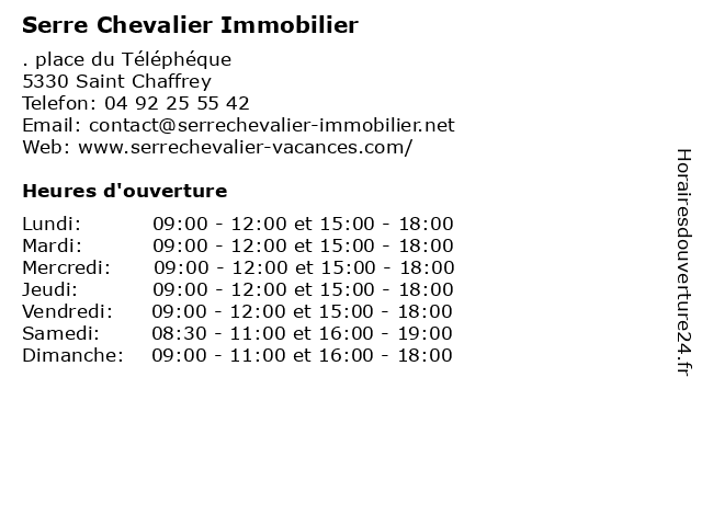 | Samedi | 08:30-11:00 et 16:00-19:00 |
