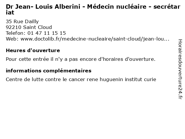 | Appeler Dr Jean- Louis Alberini - Médecin nucléaire - secrétariat | |