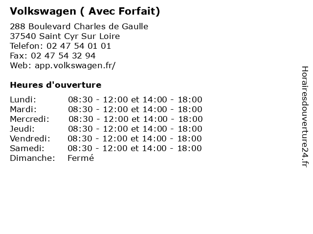 | Samedi | 08:30-12:00 et 14:00-18:00 |