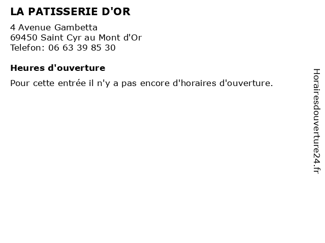 | Appeler LA PATISSERIE D'OR | |