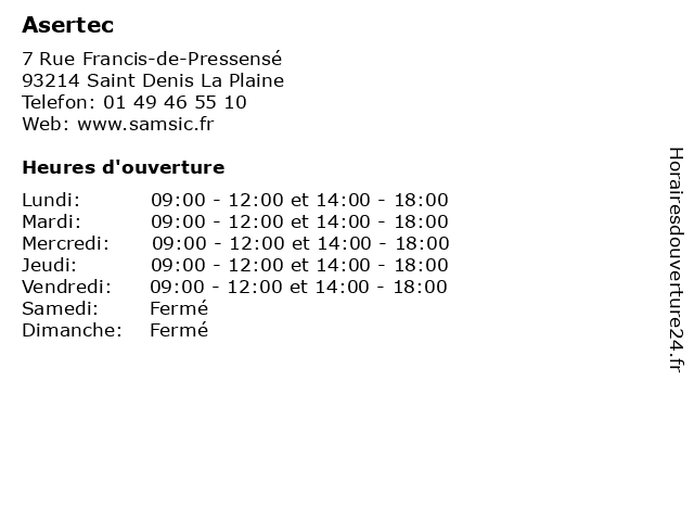 Lundi | 09:00-12:00 et 14:00-18:00 |