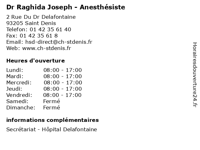 1 Dr Razan Abou El Kheir Al Chaar - Anesthésiste (Distance: nan km) 2 Rue Du Dr Delafontaine, 93205 Saint Denis abou, al, anesthésiste, chaar, consultation, docteur, dr, el, kheir, med, médecin, razan, traitement 2 Dr Colette Assedo - Anesthésiste (Distance: nan km) 2 Rue Du Dr Delafontaine, 93205 Saint Denis anesthésiste, assedo, colette, consultation, docteur, dr, med, médecin, traitement 3 Dr Monia Benkraiem - Anesthésiste (Distance: nan km) 2 Rue Du Dr Delafontaine, 93205 Saint Denis anesthésiste, benkraiem, consultation, docteur, dr, med, monia, médecin, traitement 4 Dr Bernard Bornstein - Anesthésiste (Distance: nan km) 2 Rue Du Dr Delafontaine, 93205 Saint Denis anesthésiste, bernard, bornstein, consultation, docteur, dr, med, médecin, traitement 5 Dr Hanane Dabbagh - Anesthésiste (Distance: nan km) 2 Rue Du Dr Delafontaine, 93205 Saint Denis anesthésiste, consultation, dabbagh, docteur, dr, hanane, med, médecin, traitement 6 Dr Abbas Drici - Anesthésiste (Distance: nan km) 2 Rue Du Dr Delafontaine, 93205 Saint Denis abbas, anesthésiste, consultation, docteur, dr, drici, med, médecin, traitement |