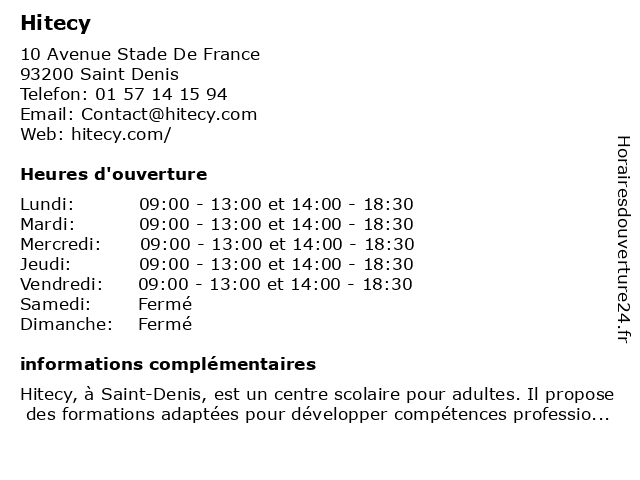 Hitecy, à Saint-Denis, est un centre scolaire pour adultes. Il propose des formations adaptées pour développer compétences professionnelles et personnelles dans un cadre pédagogique et structuré.