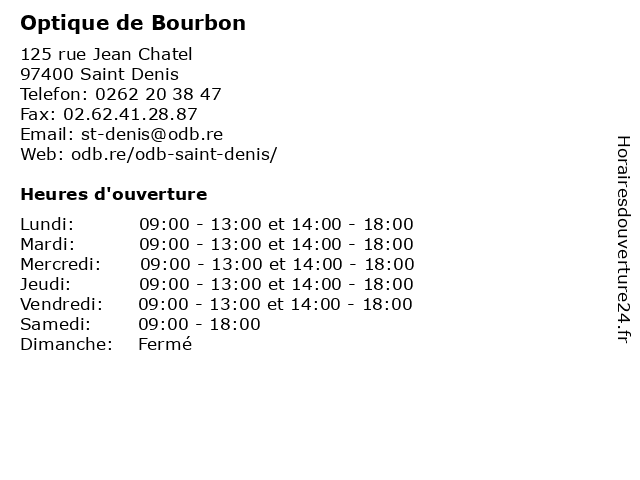 1 Optique de Bourbon (Distance: 0,16 km) 122 rue Juliette Dodu, 97400 Saint Denis bourbon, de, lunette, odb, opticien, optique, solaire, vente, vue 2 Optique de Bourbon (Distance: 7,82 km) 32 Rue Michel Ange, 97438 Saint Marie bourbon, de, lunette, odb, opticien, optique, solaire, vente, vue 3 Optique de Bourbon (Distance: 17,20 km) - Route du Cœur Saignant, 97420 Le Port bourbon, de, lentille, lunettes, optique, solaire, vue 4 Optique de Bourbon (Distance: 17,57 km) 11 Boulevard de Verdun, 97420 Le Port bourbon, de, lunette, odb, opticien, optique, solaire, vente, vue 5 Green Acres - Bourbon Investissements (Distance: 0,24 km) 18 r Rontaunay, 97400 Saint Denis acres, agency, agent, apartment, bourbon, green, home, investissements, real estate 6 Bourbon Voyages (Distance: 0,27 km) 14 rue Rontaunay, 97463 Saint-Denis agence, bourbon, circuit, hôtel, séjour, voyage, voyages |