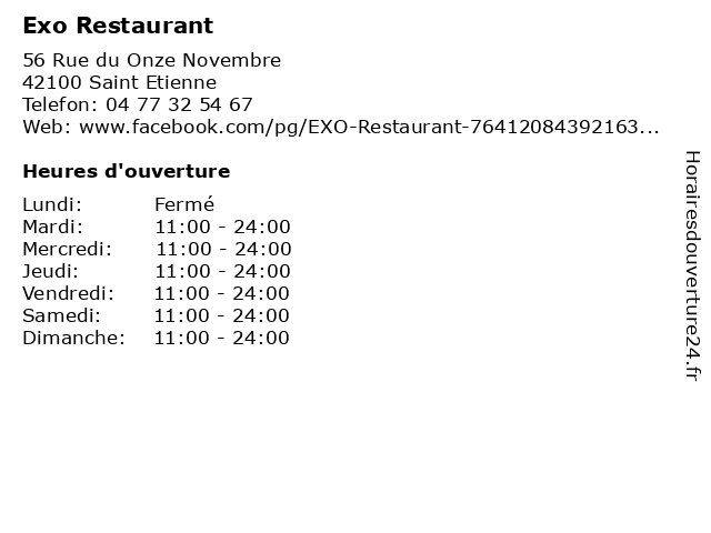 1 Exo Pizza (Distance: 0,58 km) 45 Rue Antoine Durafour, 42100 Saint-Étienne café, exo, italien, pizza, pizzas, pizzeria, restaurant, restauration 2 Exo Bibiche Mondany (Distance: 48,10 km) 52 b Avenue Jean Jaures, 69190 St Fons bibiche, divers, détail, exo, magasins, mondany, nra 3 Exo-Club (Distance: 50,19 km) 10 Rue Des Serpollières, 69008 Lyon aquarium, club, conseils, exo, matériel, plantes, poissons, reptiles, toilettage, équipement 4 City Snack Cafétéria (Distance: 0,05 km) 50 Rue du Onze Novembre, 42100 Saint-Étienne alimentation, brasserie, cafeteria, cafétéria, city, parking, restaurant, snack, terrasse 5 Speed Burger (Distance: 0,10 km) 39 rue du onze novembre, 42100 Saint-Etienne burger, burgers, frites, nuggets, restauration rapide, salades, speed 6 Méli Mélo Saveurs (Distance: 0,18 km) 34 Rue du 11 Novembre, 42100 Saint-Étienne bar, bistro, bistrot, brasserie, café, méli, mélo, restaurant, restauration, saveurs |
