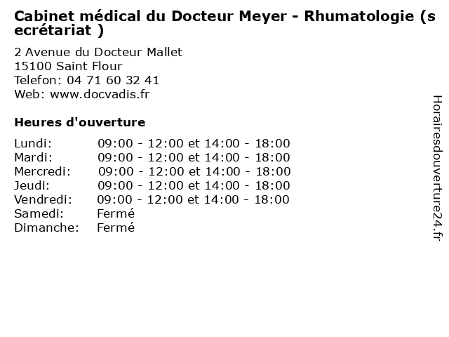 Termes de recherche pour Cabinet médical du Docteur Meyer - Rhumatologie (secrétariat ):du, cabinet, santé, medical, meyer, secretariat, docteur, consultation, rhumatologie |