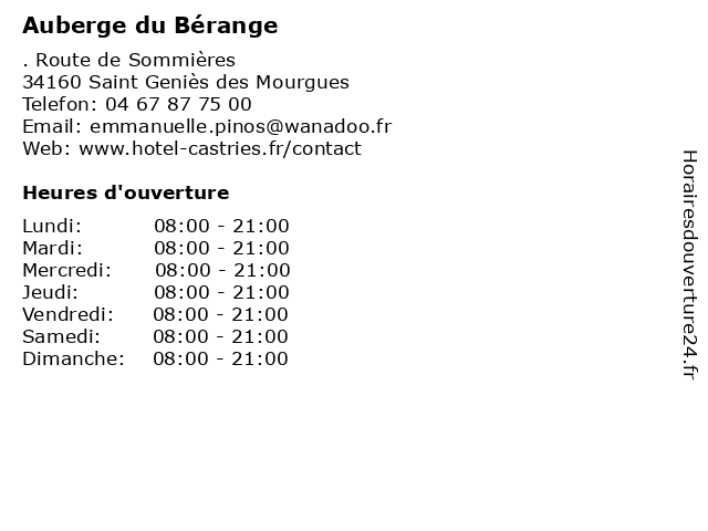 | Dimanche | 08:00-21:00 |