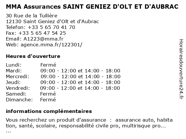 | Mardi | 09:00-12:00 et 14:00-18:00 |