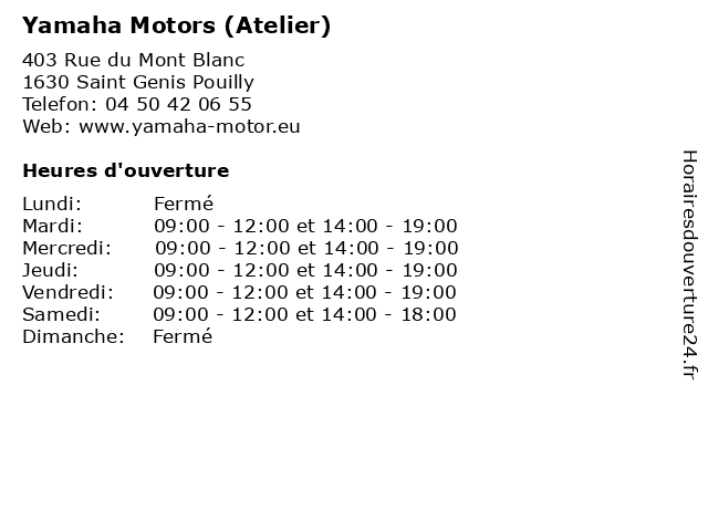 1 Yamaha Motors (Atelier) (Distance: 19,28 km) 8 Allee du Mousseron des Pres, 74100 Ville la Grand atelier, cyclos, maxi-scooter, motors, motos, scooter, yamaha 2 Yamaha Motors (Distance: 0,00 km) 403 Rue du Mont Blanc, 01630 Saint Genis Pouilly cyclos, maxi-scooter, motors, motos, scooter, yamaha 3 Redaro Motors - Conciergerie (Distance: 12,41 km) 268 rue du Galet de Gargantua, 01220 Divonne-Les-Bains concession, concessionnaire, conciergerie, gardiennage, motors, redaro, voiture, véhicule 4 Redaro Motors - Showroom (Distance: 12,41 km) 268 rue du Galet de Gargantua, 01220 Divonne-Les-Bains concession, concessionnaire, motors, redaro, showroom, vente, voiture, véhicule 5 Suzuki - SAVOIE MOTORS ANNEMASSE - Magasin (Distance: 19,16 km) 2 Allée du Mousseron des Prés, 74100 Ville-la-Grand annemasse, magasin, motors, révisions, savoie, service, services, services d'automobiles, suzuki 6 Suzuki - SAVOIE MOTORS ANNEMASSE - Service Après-Vente (Distance: 19,16 km) 2 Allée du Mousseron des Prés, 74100 Ville-la-Grand annemasse, après, motors, révisions, savoie, service, services, services d'automobiles, suzuki, vente |
