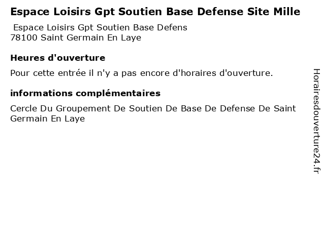 Termes de recherche pour Espace Loisirs Gpt Soutien Base Defense Site Mille:saint, germain, laye, espace, defense, restaurants, loisirs, cercle, mille, site, base, groupement, soutien, gpt |
