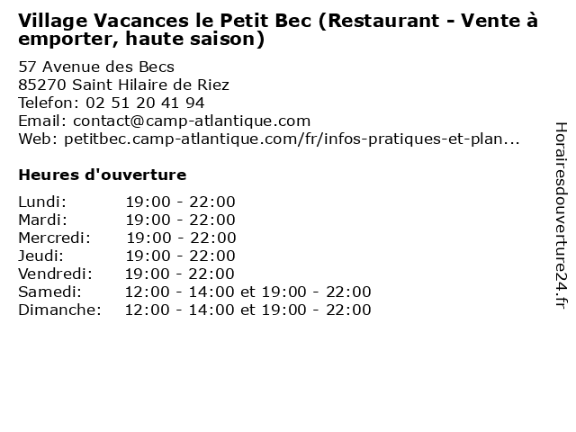 Termes de recherche pour Village Vacances le Petit Bec (Restaurant - Vente à emporter, haute saison):restaurant, le, petit, village, vente, hebergement, hôtel, vacances, saison, emporter, haute, bec |