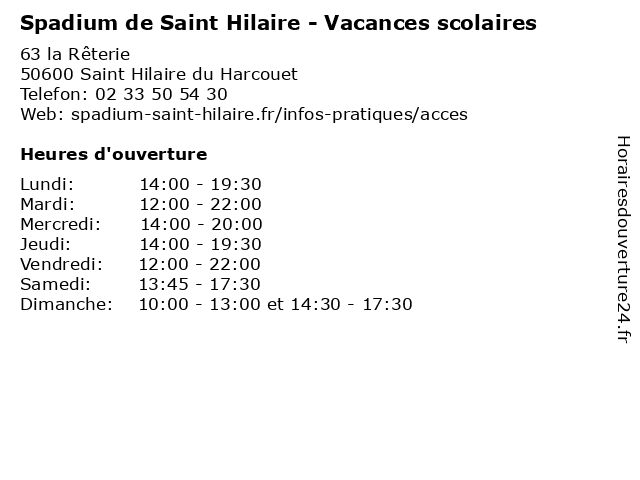 | Dimanche | 10:00-13:00 et 14:30-17:30 |