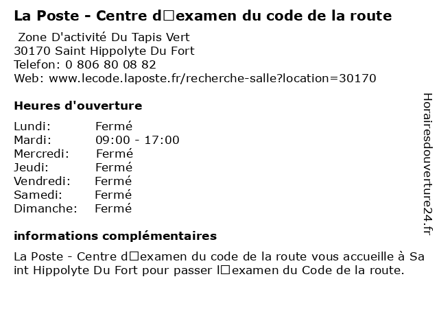 Termes de recherche pour La Poste - Centre d’examen du code de la route:poste, la, du, de, route, centre, code, d’examen, centre d'évaluation scolaire, école technique |