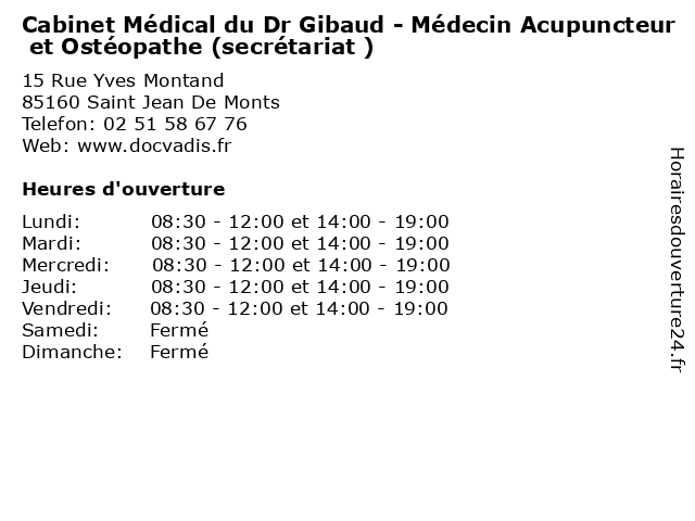 Termes de recherche pour Cabinet Médical du Dr Gibaud - Médecin Acupuncteur et Ostéopathe (secrétariat ):du, et, cabinet, santé, medical, secretariat, docteur, médecin, consultation, dr, ostéopathe, acupuncteur, gibaud |
