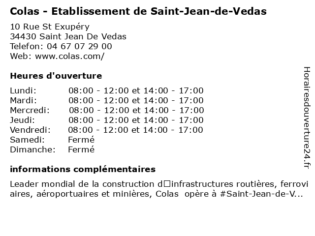 Termes de recherche pour Colas - Etablissement de Saint-Jean-de-Vedas:de, saint, jean, vedas, colas, etablissement, entreprise générale de construction |