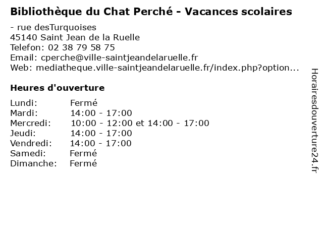 Termes de recherche pour Bibliothèque du Chat Perché - Vacances scolaires:du, perche, chat, livres, vacances, bibliotheque, cd, dvd, scolaires, jeux videos, revues |