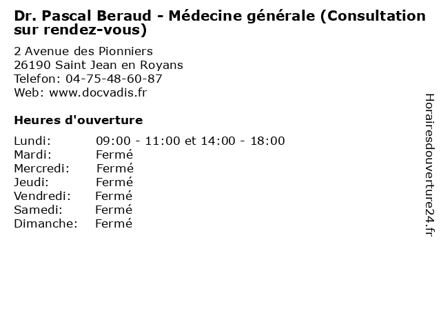 Termes de recherche pour Dr. Pascal Beraud - Médecine générale (Consultation sur rendez-vous):sur, générale, vous, pascal, medecine, santé, rendez, docteur, dr., médecins, consultation, béraud |