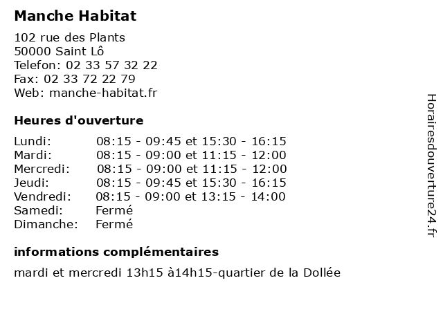 | Dimanche | Fermé |