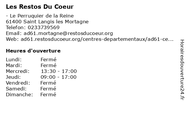 1 Secours Catholique (Distance: 1,06 km) 69 Rue des 15 Fusillés, 61400 Mortagne au Perche associatif, association, bénévolat, bénévole, catholique, secours, solidaire, solidarité 2 Les Restos Du Coeur (Distance: 22,90 km) - Rue Charles Granger, 72600 Mamers aides, alimentaire, coeur, du, les, restos, santé, solidarité, soutien 3 Les Restos Du Coeur (Distance: 33,97 km) 6 rue Lemaître, 61000 Alençon aides, alimentaire, coeur, du, les, restos, santé, solidarité, soutien 4 Les Restos Du Coeur - Siege Départemental (Distance: 33,97 km) 46 Rue Lazare Carnot, 61000 Alençon aides, alimentaire, coeur, du, départemental, les, restos, santé, siege, solidarité, soutien 5 Association de Soutien aux Travailleurs Immigrés (APE) (Distance: 34,77 km) 2 Rue Charles Péguy, 61000 Alençon ape, association, aux, de, droit, immigrés, soutien, travailleurs 6 Les Restos Du Coeur (Distance: 37,63 km) 1 route de Mamers, 72400 La Ferté-Bernard aides, alimentaire, coeur, du, les, restos, santé, solidarité, soutien |
