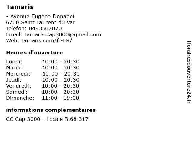 1 Tamaris (Distance: 7,36 km) 30 Avenue Jean Medecin, 06000 Nice bijoux, boutique de chaussures, femme, luxe homme, mode, tamaris 2 Tamaris (Distance: 7,50 km) 30 Avenue Jean Medecin, 06000 Nice beaute, bijoux, boutiques, chausseur, enfants, maison, mode femmes, mode hommes, restaurant, sport, tamaris 3 Promod (Distance: 0,00 km) - Avenue Eugène Donadeï, 06700 Saint-Laurent-du-Var accessoires, mode, promod, vêtements 4 La Halle aux Chaussures (Distance: 0,00 km) 1 avenue Eugène Donadeï, 06700 Saint-Laurent-du-Var accessoires, aux, chaussures, enfants, femme, halle, homme, la, magasin, mode, vêtements 5 Café Coton (Distance: 0,00 km) - Avenue Eugène Donadeï, 06700 Saint-Laurent-du-Var accessoires, café, chemises, coton, habillement, hommes, mode, pret à porter, vêtements 6 Le Temps des Cerises (Distance: 0,00 km) - Avenue Eugène Donadeï, 06700 Saint-Laurent-du-Var accessoires, cerises, des, habillement, le, mode, porter, pret, temps, vêtements |