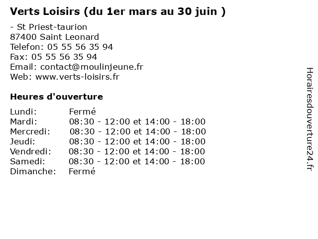 | Mardi | 08:30-12:00 et 14:00-18:00 |