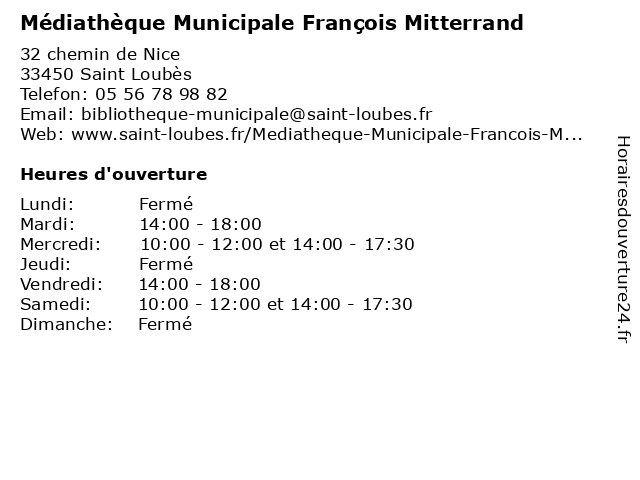 | Mercredi | 10:00-12:00 et 14:00-17:30 |