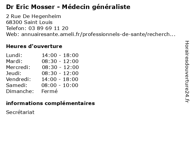 5 Dr Nawal Maache - Médecin généraliste (Distance: 0,00 km) 2 Rue d'Hegenheim, 68300 Saint-Louis docteur, dr, generaliste, généraliste, maache, medical, médecin, nawal, soin 6 Adecco Généraliste (Distance: 1,51 km) 43 Rue de Huningue, 68300 Saint Louis adecco, agences, cdd, cdi, emploi, emploi intérim, généraliste, services |