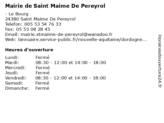 Termes de recherche pour Mairie de Saint Maime De Pereyrol:de, saint, mairie, central, commune, maime, péreyrol, gouvernement, nra |