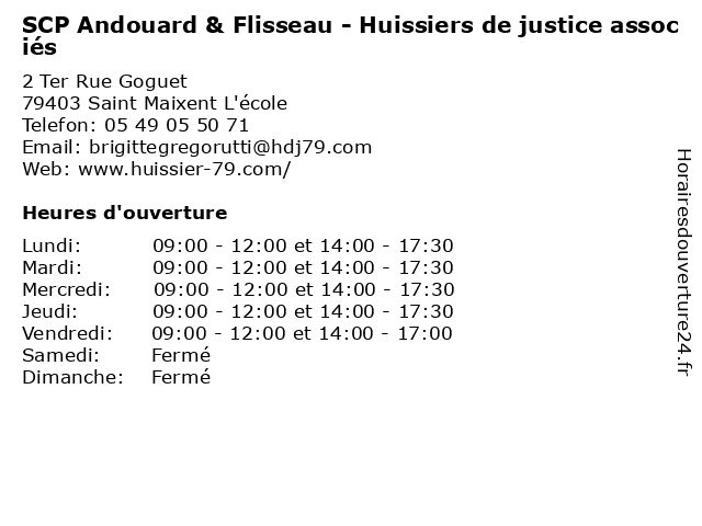 Lundi | 09:00-12:00 et 14:00-17:30 |