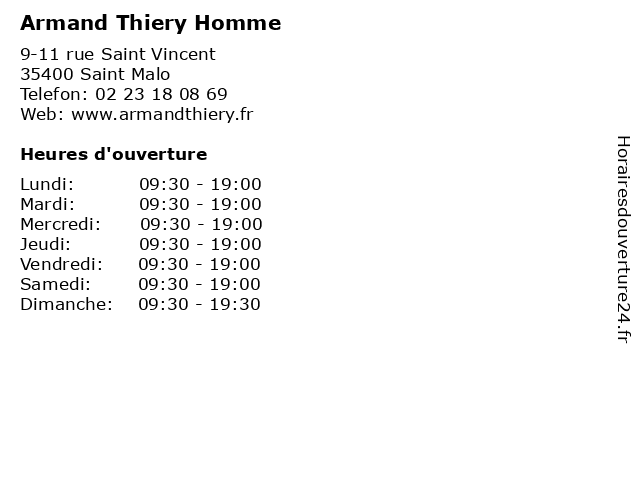 | 1 Armand Thiery (Distance: 5,24 km) - Zac Cap Emeraude, 35730 Pleurtuit accessoires, armand, habillement, mode, pret à porter, thiery, vêtements 2 Huîtres A. Prod'homme (Distance: 11,71 km) 2 rue du vauhariot, 35260 Cancale a., fournisseur, fruits, huitres, huîtres, mer, prod'homme 3 Tommy Hilfiger (Distance: 0,19 km) 1 Place du Pilori, 35400 Saint-Malo accessoires, chaussures, habillement, hilfiger, mode, pret-a-porter, tommy, vetements 4 Des Petits Hauts (Distance: 0,20 km) 14 Rue Broussais, 35400 Saint-Malo accessoires, chaussures, des, habillement, hauts, mode, petits, porter, pret, sacs, vêtements 5 Sud Express (Distance: 0,23 km) 9 Rue Broussais, 35400 Saint-Malo accessoires, chaussures, express, habillement, mode, pret-a-porter, sud, vetements 6 Aigle (Distance: 0,32 km) 18 rue de Dinan, 35400 Saint Malo accessoires, aigle, chaussures, habillement, mode, pret-a-porter, vetements |