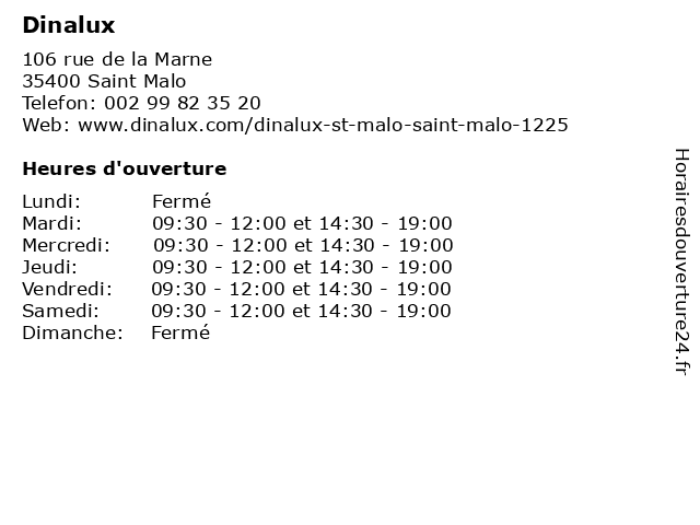 | Mardi | 09:30-12:00 et 14:30-19:00 |