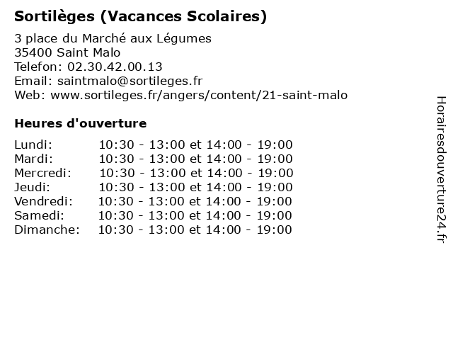 | Mercredi | 10:30-13:00 et 14:00-19:00 |