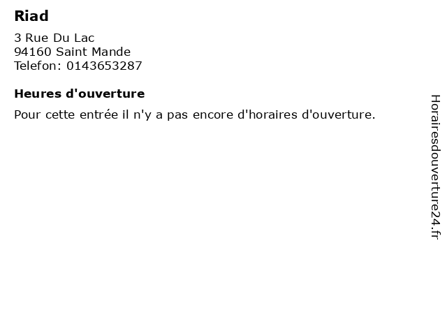 1 Hammam Le Riad (Distance: 2,67 km) 184 rue des Pyrénées, 75020 Paris aquabike, aquabiking, hammam, le, massages, riad, sauna, spa 4 Riad Arago Coiffure (Distance: 5,13 km) 31 Boulevard Arago, 75013 Paris arago, cheveux, coiffeur, coiffure, riad 5 Anoil Riad Salam (Distance: 8,91 km) 101 Quai Winston Churchill, 94210 La Varenne St Hilaire anoil, restaurants, riad, salam 6 |