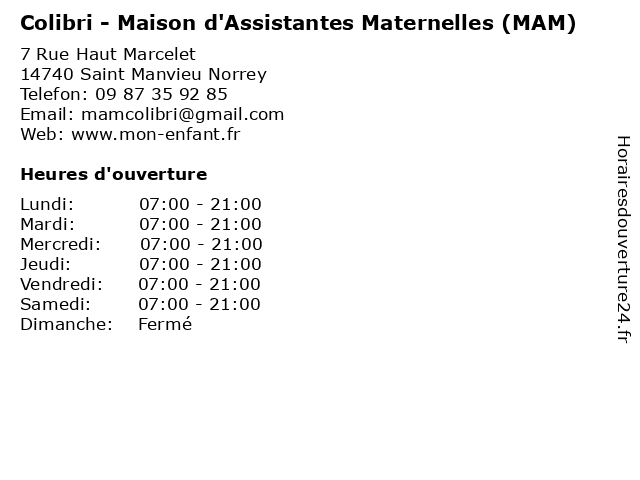 | Mercredi | 07:00-21:00 |