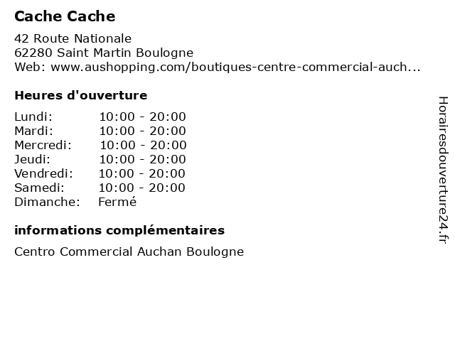 2 Cache Cache (Distance: 2,94 km) , Rn 42, 62280 Saint-Martin-Boulogne accessoires, boutiques, cache, jean, jupe, pull, robe, soldes 3 Cache Cache (Distance: 5,68 km) Boulevard de la Liane, 62230 Outreau blazer femme, boutique vêtements, cache, cardignan femme, chaussures femme, gilet femme, jean femme, magasin vêtements, manteau femme, mode femme, pull femme, robe femme, sac femme, t-shirt femme, tailleur femme, top femme, vêtements femme 4 Vib's (Cache Cache - Bonobo - Bréal) (Distance: 0,43 km) Route Nationale 42, 62280 Saint-Martin-Boulogne blazer femme, bonobo, boutique vêtements, bréal, cache, cardignan femme, chaussures femme, gilet femme, magasin vêtements, magasin vêtements mixte, manteau femme, mode femme, pull femme, robe femme, sac femme, t-shirt femme, t-shirt homme, tailleur femme, top femme, vib's, vêtements femme, vêtements homme, vêtements mixte 6 Cache Cache (Distance: 37,16 km) 48 Rue Carnot, 62600 Berck blazer femme, boutique vêtements, cache, cardignan femme, chaussures femme, gilet femme, jean femme, magasin vêtements, manteau femme, mode femme, pull femme, robe femme, sac femme, t-shirt femme, tailleur femme, top femme, vêtements femme |