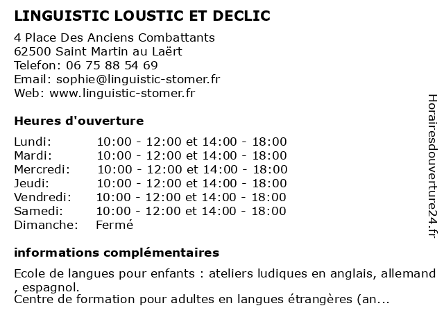 | Mardi | 10:00-12:00 et 14:00-18:00 |