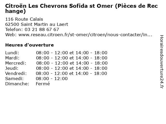 | Mercredi | 08:00-12:00 et 14:00-18:00 |