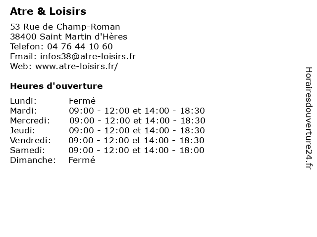 Samedi | 09:00-12:00 et 14:00-18:00 |
