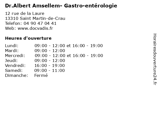 1 Dr.Albert Amsellem- Gastro-entérologie (Consultation sur rendez-vous) (Distance: 0,00 km) 12 rue de la Laure, 13310 Saint Martin-de-Crau amsellem, consultation, docteur, dr.albert, entérologie, gastro, rendez, santé, sur, vous 2 Ecole élémentaire publique Albert Camus (Distance: 7,98 km) - Rue Fernand Léger, 13280 Arles albert, camus, cio, collège, cours, ecole, enseignement, lycée, maternelle, nationale, orientation, primaire, privé, privée, public, publique, école, éducation, élémentaire 3 Dr Sophie Alibert - Gastro-entérologue et hépatologue (Distance: 13,98 km) - Quartier Fourchon, 13637 Arles alibert, consultation, docteur, dr, entérologue, et, gastro, hépatologue, med, médecin, médecine, sophie, traitement 4 Dr Gaelle Boudoux d'Hautefeuille - Gastro-entérologue et hépatologue (Distance: 13,98 km) - Quartier Fourchon, 13637 Arles boudoux, consultation, d'hautefeuille, docteur, dr, entérologue, et, gaelle, gastro, hépatologue, med, médecin, médecine, traitement 5 Dr Guy Boulay - Gastro-entérologue et hépatologue (Distance: 13,98 km) - Quartier Fourchon, 13637 Arles boulay, consultation, docteur, dr, entérologue, et, gastro, guy, hépatologue, med, médecin, médecine, traitement 6 Dr Johny Rakotovao - Gastro-entérologue et hépatologue (Distance: 13,98 km) - Quartier Fourchon, 13637 Arles consultation, docteur, dr, entérologue, et, gastro, hépatologue, johny, med, médecin, médecine, rakotovao, traitement |