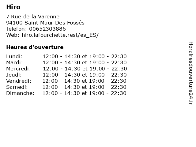 | Dimanche | 12:00-14:30 et 19:00-22:30 |