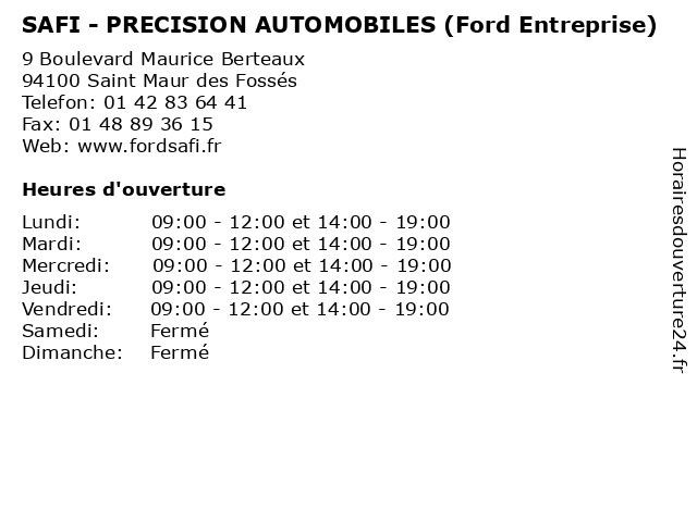 1 SAFI - PRECISION AUTOMOBILES (Ford Entreprise) (Distance: 4,25 km) 2/4 Avenue du Président Salvador Allende, 94400 Vitry sur Seine automobiles, entreprise, entretien, ford, precision, révisions, safi, services d'automobiles, vidanges 2 SAFI - PRECISION AUTOMOBILES (Véhicules Neufs) (Distance: 0,00 km) 9 Boulevard Maurice Berteaux, 94100 Saint Maur des Fossés automobiles, entretien, neufs, precision, révisions, safi, services d'automobiles, vidanges, véhicules 3 SAFI - PRECISION AUTOMOBILES (Véhicules d'Occasion) (Distance: 0,00 km) 9 Boulevard Maurice Berteaux, 94100 Saint Maur des Fossés automobiles, d'occasion, entretien, precision, révisions, safi, services d'automobiles, vidanges, véhicules 4 SAFI - PRECISION AUTOMOBILES (Entretien) (Distance: 0,00 km) 9 Boulevard Maurice Berteaux, 94100 Saint Maur des Fossés automobiles, entretien, precision, révisions, safi, services d'automobiles, vidanges 5 SAFI - PRECISION AUTOMOBILES (Pièces et Accessoires) (Distance: 0,00 km) 9 Boulevard Maurice Berteaux, 94100 Saint Maur des Fossés accessoires, automobiles, entretien, et, pièces, precision, révisions, safi, services d'automobiles, vidanges 6 SAFI - PRECISION AUTOMOBILES (General) (Distance: 0,00 km) 9 Boulevard Maurice Berteaux, 94100 Saint Maur des Fossés automobiles, entretien, general, precision, révisions, safi, services d'automobiles, vidanges |