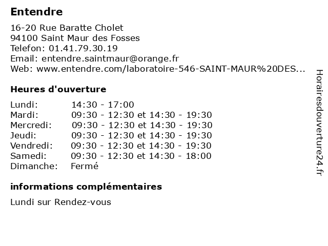 | Mercredi | 09:30-12:30 et 14:30-19:30 |